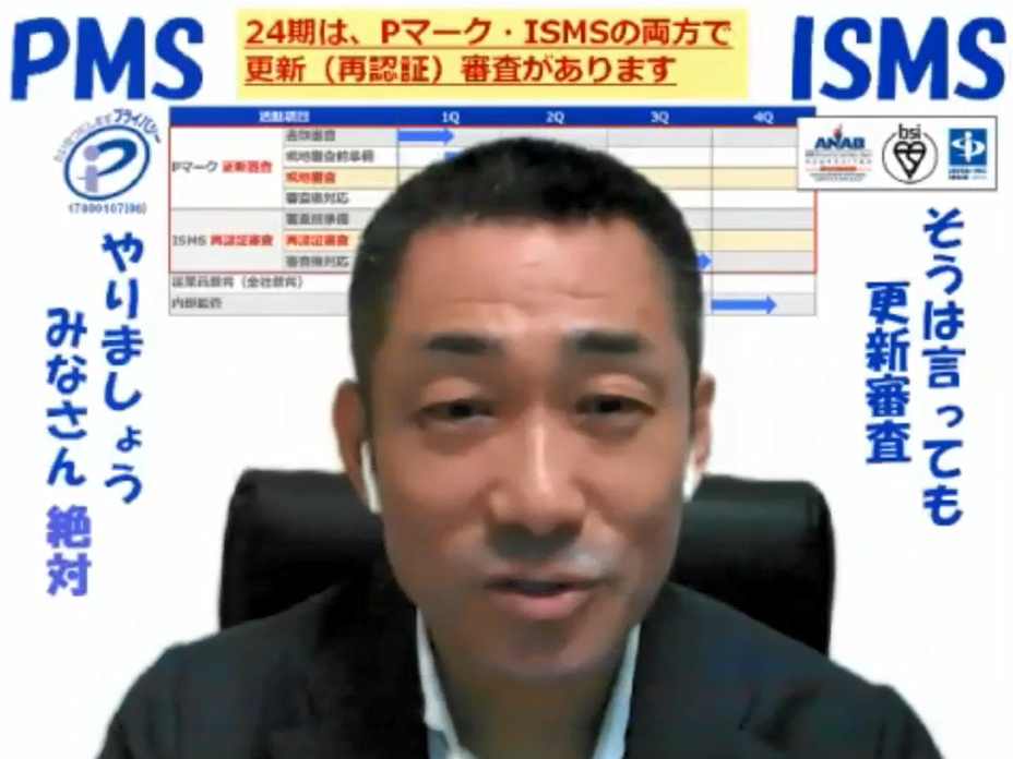 今期はISMSの再認証審査もありますし、Pマークの更新審査も予定していますので、事務局メンバーを中心とした対応は当然のことですが、情報管理の現場においては部門推進員の皆さんと部門責任者である部長・室長の対応が非常に重要となってきます。