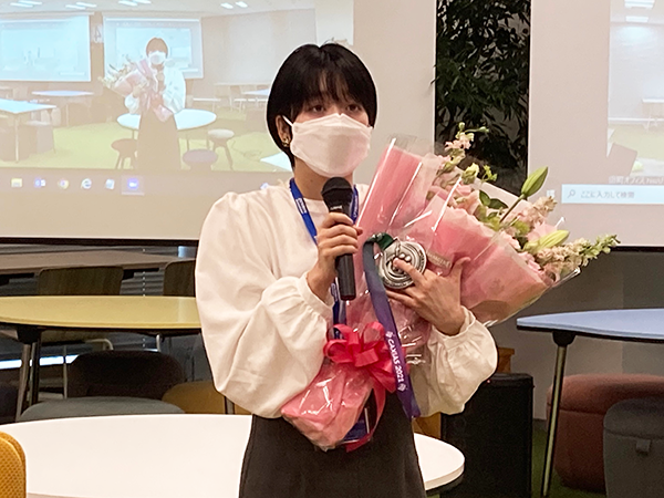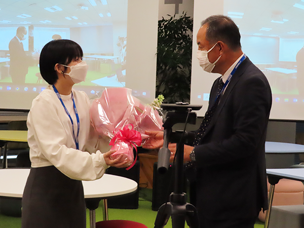 山口副社長より、長原選手へ花束の贈呈をお願いいたします。