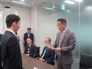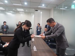 役員紹介の後には内定証書の交付が行われました。