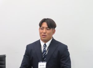 「帝京大学教育学部からきました吉田 有吾と申します。現在帝京大学ラグビー部で、活動しておりいままでラグビーで培ってきた経験を基に御社でも自分の挑戦をさらに続けて参りたいと思います。また、清水社長の後輩として恥じないように一生懸命頑張っていきたいと思います。よろしくお願いいたします。」