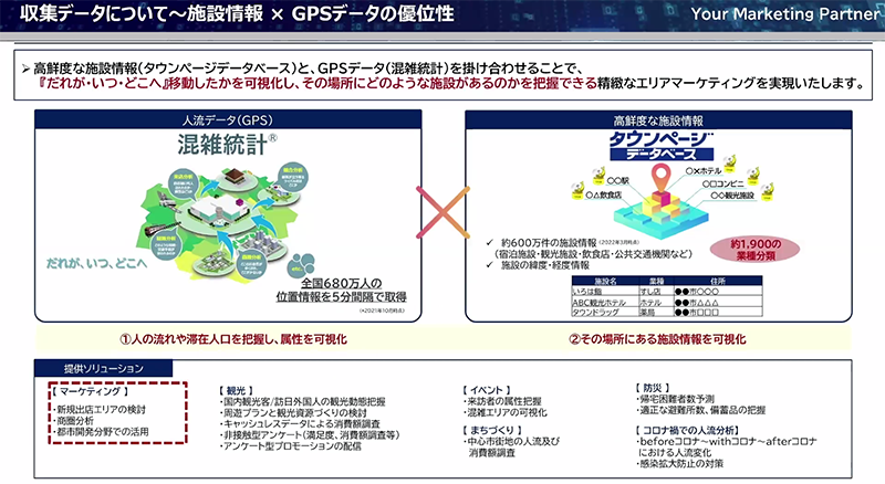 ③「タウンページデータベース」の紹介、施設情報×人流データの優位性