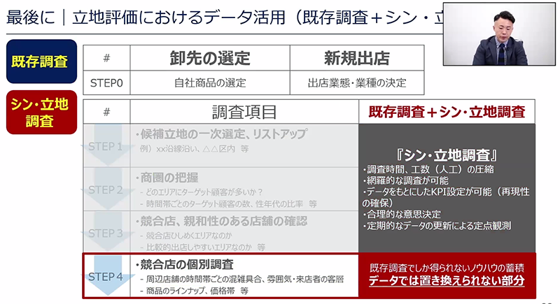 最後に「シン・立地調査」の既存業務への組み込み方について説明しました。