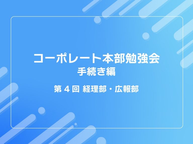2024年8月8日に、コーポレート本部主催の勉強会 手続き編の第1回を開催いたしました。 勉強会につ […] -
