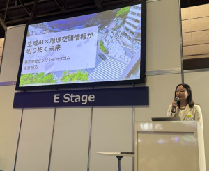 また、カンファレンス会場ではサービス企画室の金澤さんが登壇し、『生成AI×地理空間情報が切り拓く未来』というタイトルで講演を行いました。