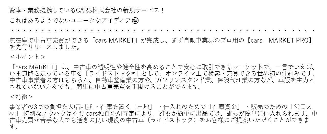当社の業務・資本提携先「cars株式会社」の自動車業界のマーケティングAI社員「cars MANAGER(カーズマネージャー)」が2022年度のグッドデザイン賞を受賞しました。自動車業界のマーケティング分野のクラウドサービスとしては初めての受賞となります。