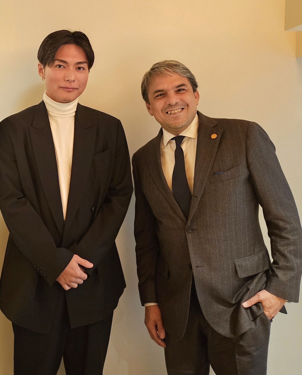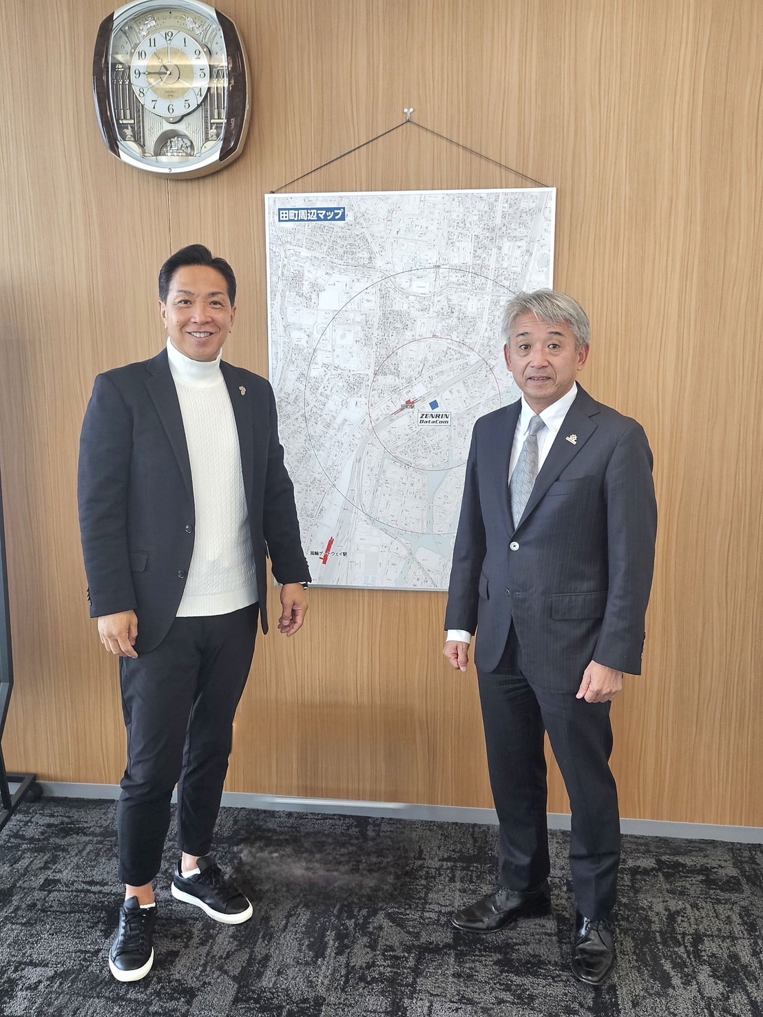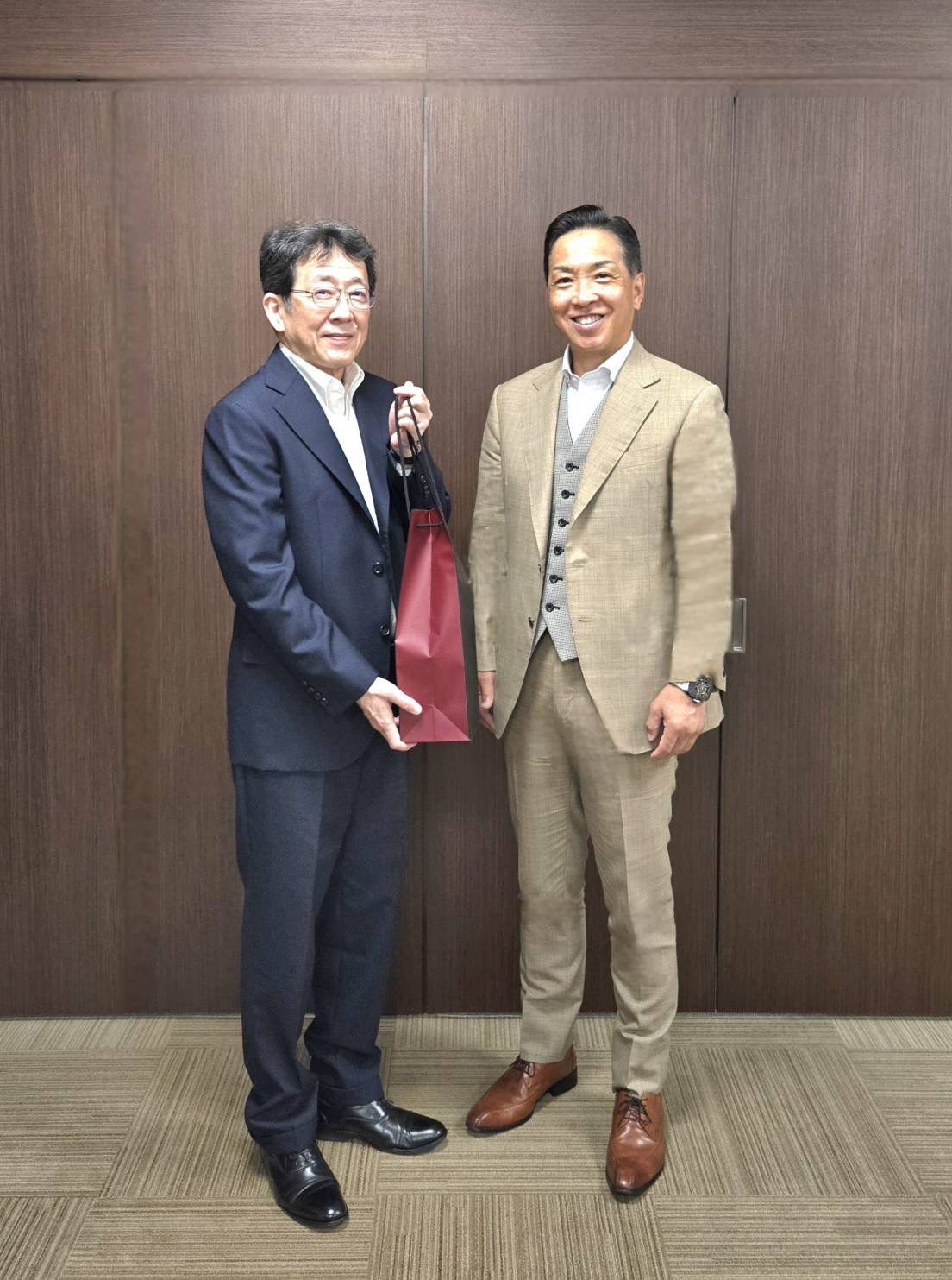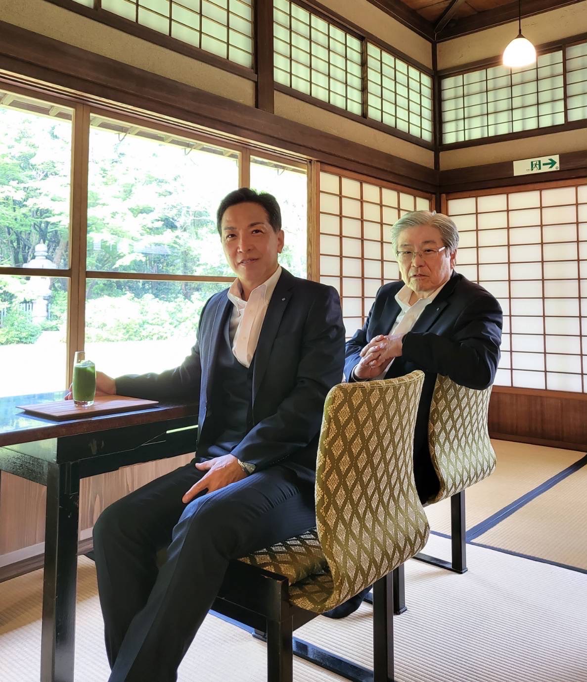 能登の復興に尽力されている浦建築研究所の中越さんと、能登カントリーでチャリティーゴルフ大会を開催したリシャール・ミルの川崎社長。