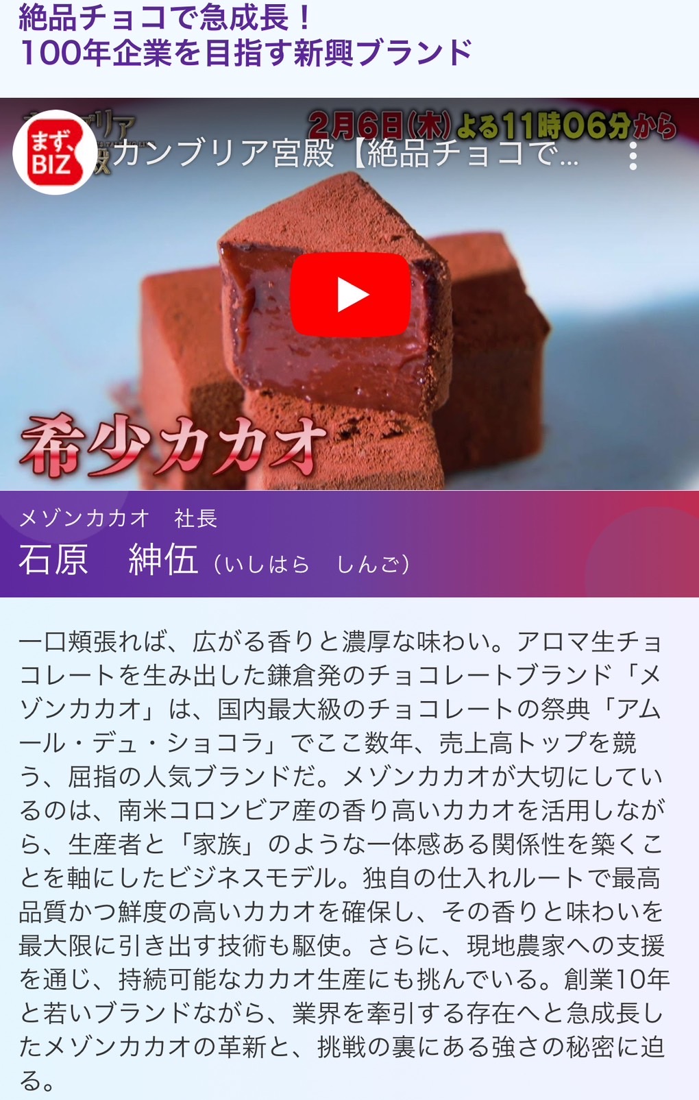 それからコロンビアカカオ農家の収益改善を手掛け、日本では、このカカオを使ったチョコレートの生産・販売、鎌倉でのレストラン経営も手掛けています。