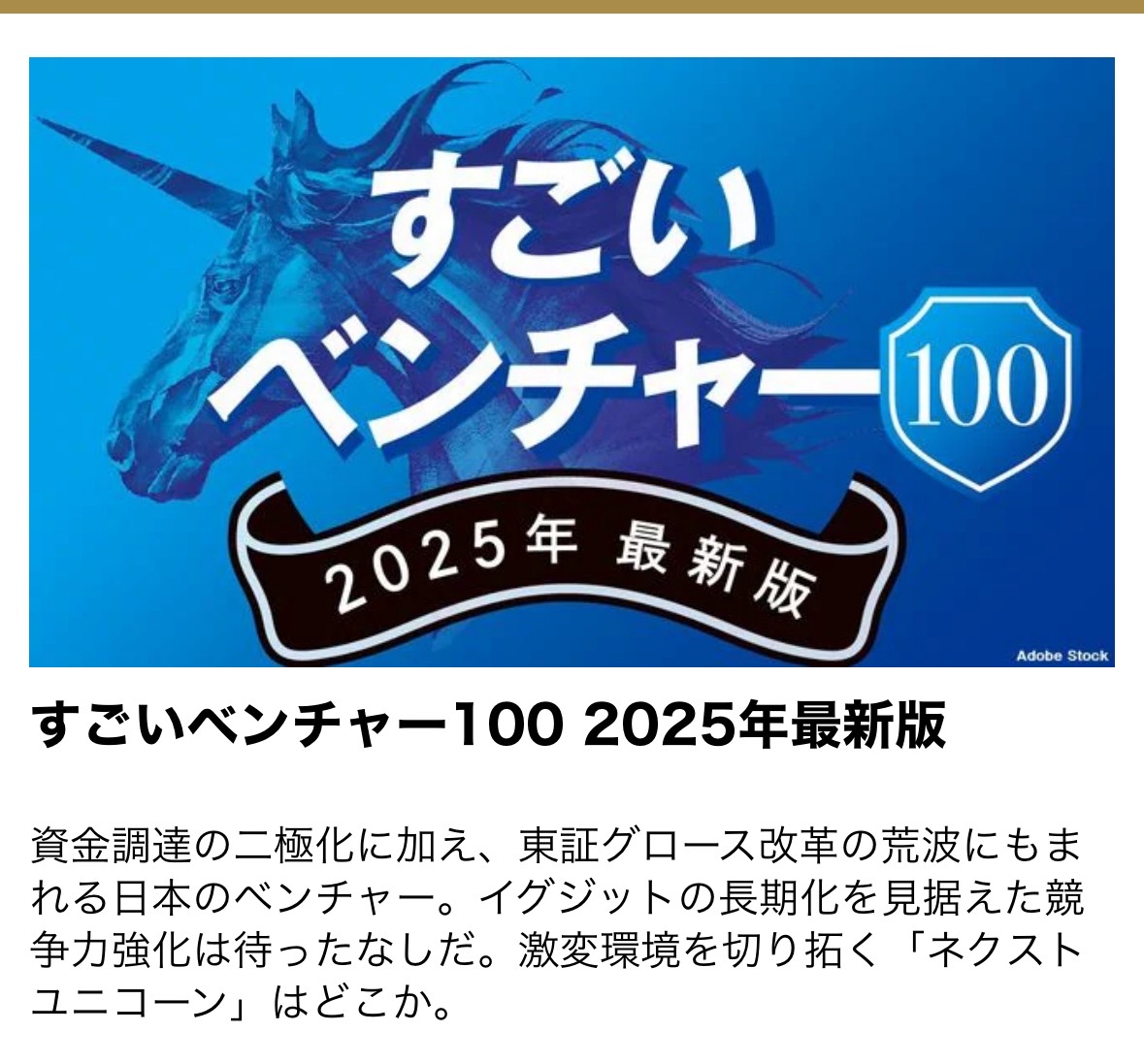 東洋経済が選ぶ"すごいベンチャー" ベスト100に選出された。