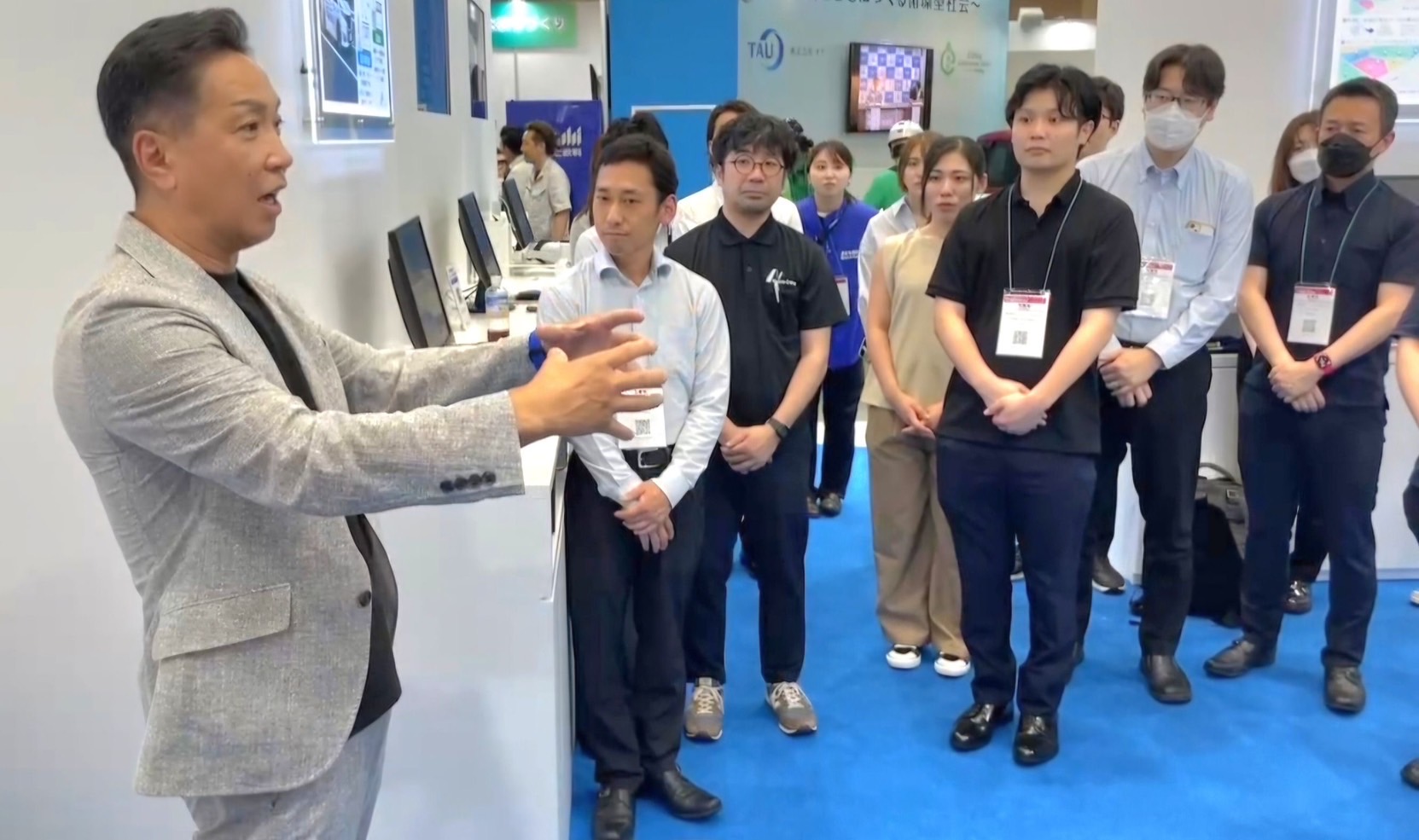 NTT株式会社 研究開発マーケティング本部の吉川さんにパビリオンの見どころをレクチャーしていただいた。