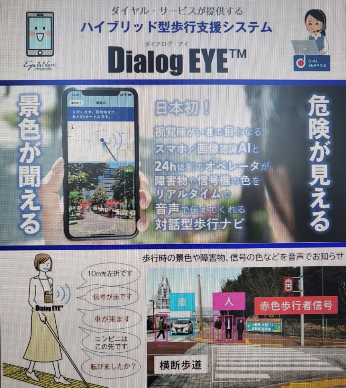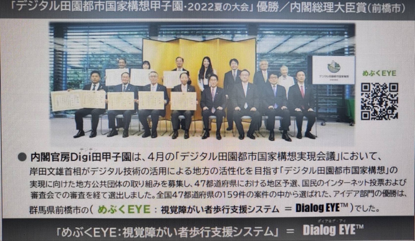 2021年度まで当社の顧問で、コンピューターサイエンス研究所の林社長が手掛ける視覚障がい者歩行支援アプリ「Eye Navi」(ダイアローグナビ)を河野デジタル大臣が体験されました。当社はパートナー事業部本部が協力しています。