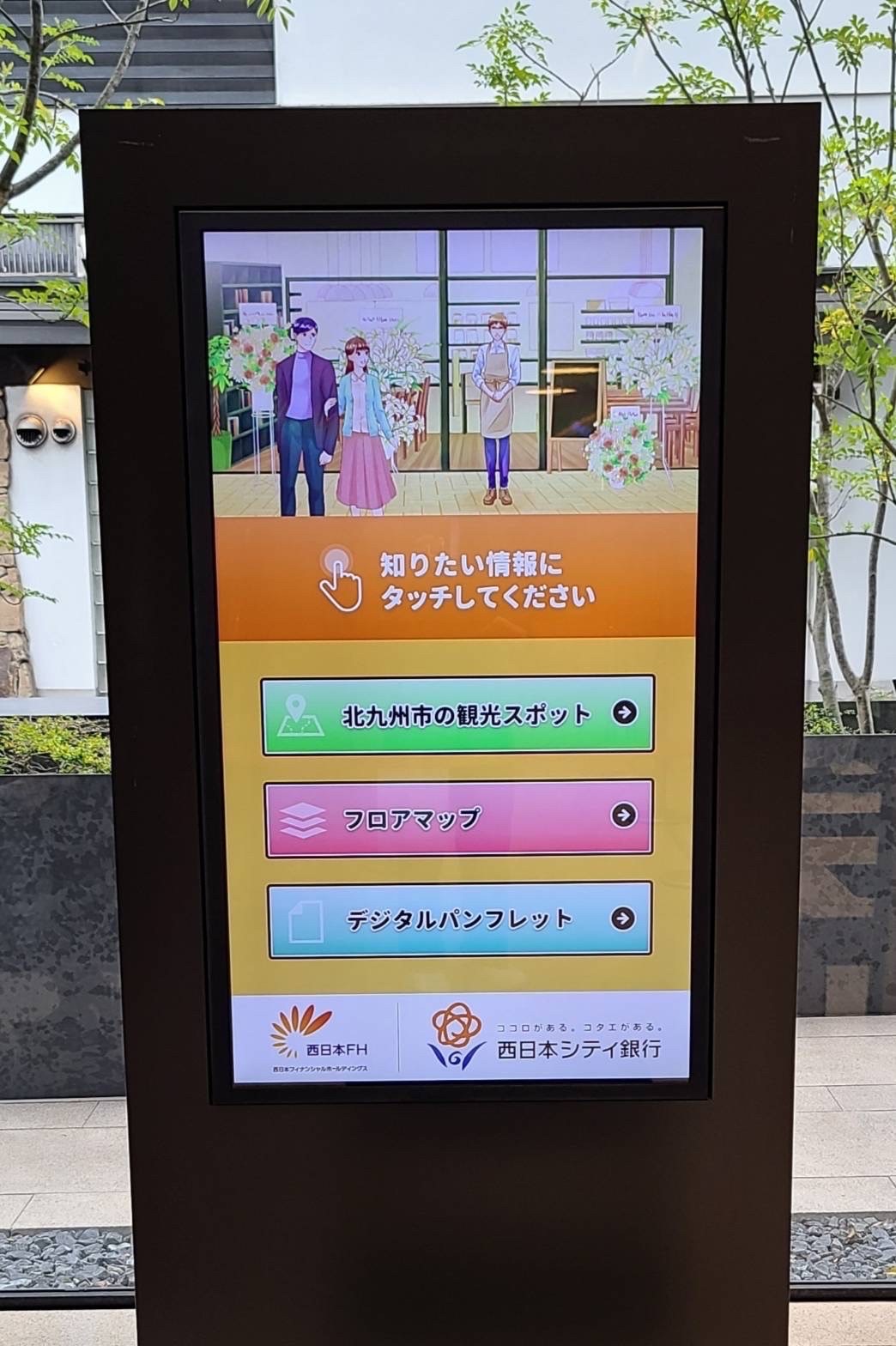 イオンモール八幡東にサイネージを設置しました。スーパーシティ構想のコンテンツには、屋内地図、3D、各種ナビ、自動運転、制御アプリ、駐車場コントロール、エンタメなど、様々な要望があるので包括して当社で請け負えるように着々と準備していきます。