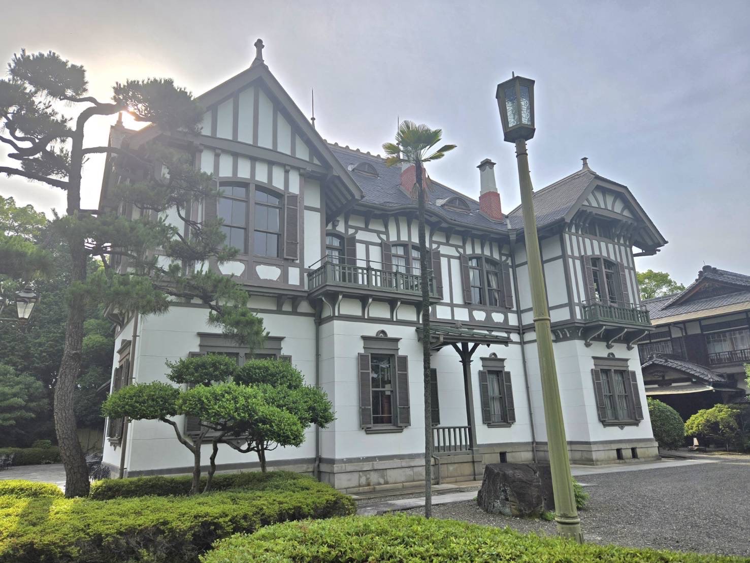 明治専門学校(現在の九州工業大学)の創立者のひとりであった松本健次郎が、明治41年から45年にかけて自らの住宅と学校の迎賓館を兼ねて建設した。 北九州市戸畑に位置し、屋敷の周辺は木々の繁る丘陵地で、敷地面積は約1.3ヘクタール、洋館と日本館からなる明治時代の典型的な貴紳住宅である。 この設計も東京駅や旧唐津銀行本店を設計した辰野金吾が行っている。