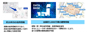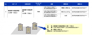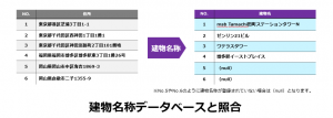 住所データとゼンリンの建物名称データベースを照合することで建物名称の付与を行います。