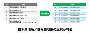 日本測地系、世界測地系の選択が可能です。