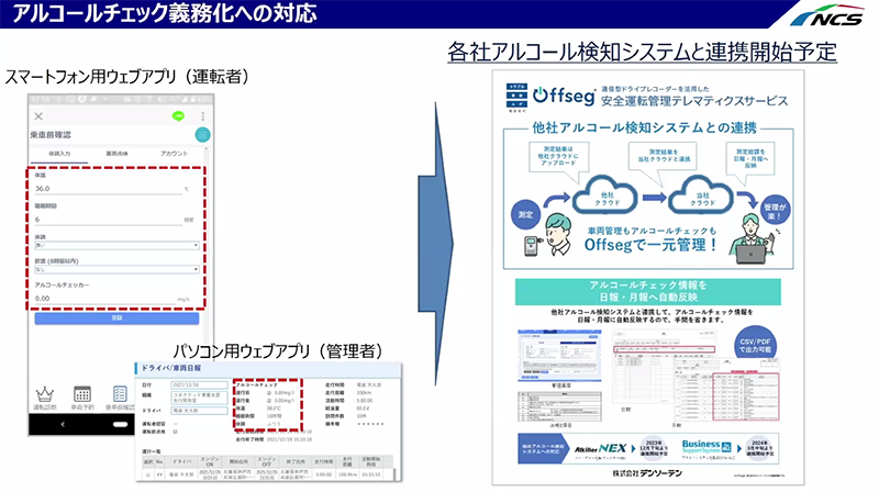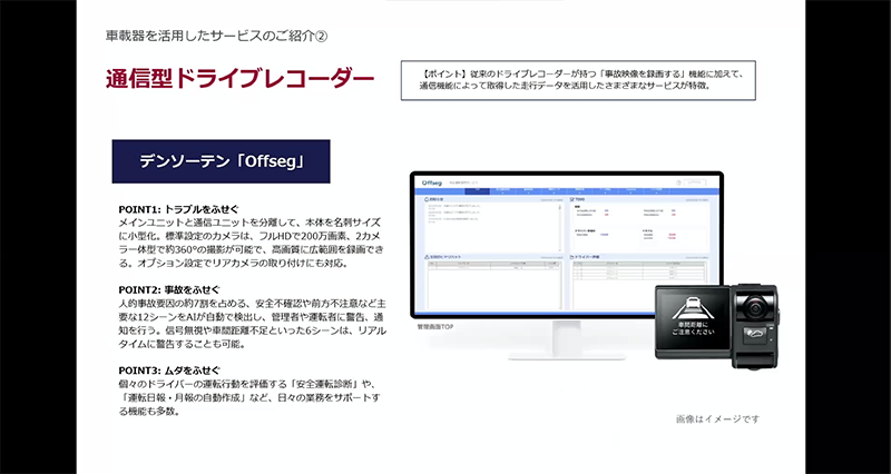高野さんはNCS社で取り扱う、デンソーテン社開発のAI搭載テレマティクスサービス「Offseg®」を紹介しました。