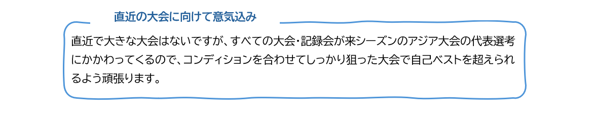 A 今シーズン中に7m越えのジャンプをする、ベンチプレス120kgです。